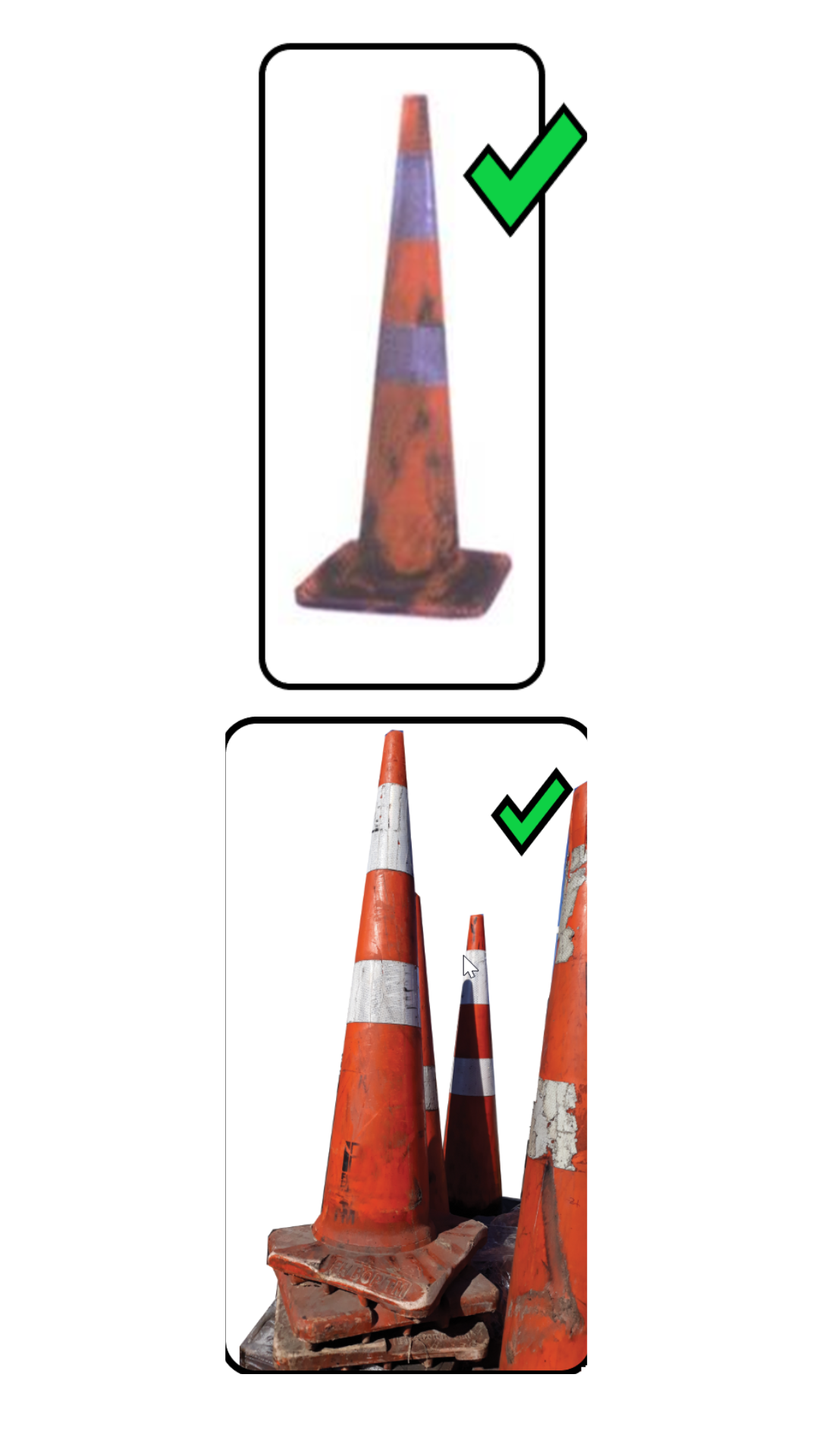 - Cones are acceptable even if they have punctures and small areas of staining due to materials such as asphalt, cement slurry or dirt – see below: